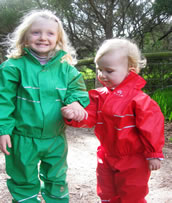 We specialise in waterproof clothing for children aged 6 and under - those who love to get out and wet and dirty. There are hundreds of raincoats available these days, but many are made of materials that aren't comfortable for kids to wear and don't include waterproof pants so the kids can't jump in puddles (Just try stopping them!).